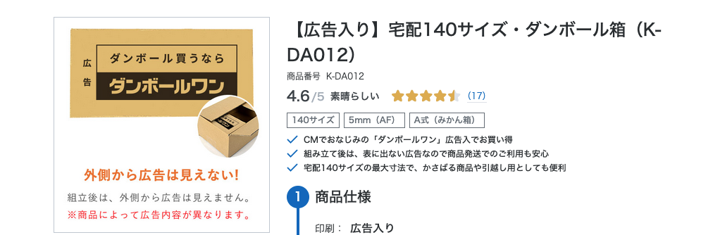 広告のないダンボールは20%ぐらい割高ですが選択は可能です。
